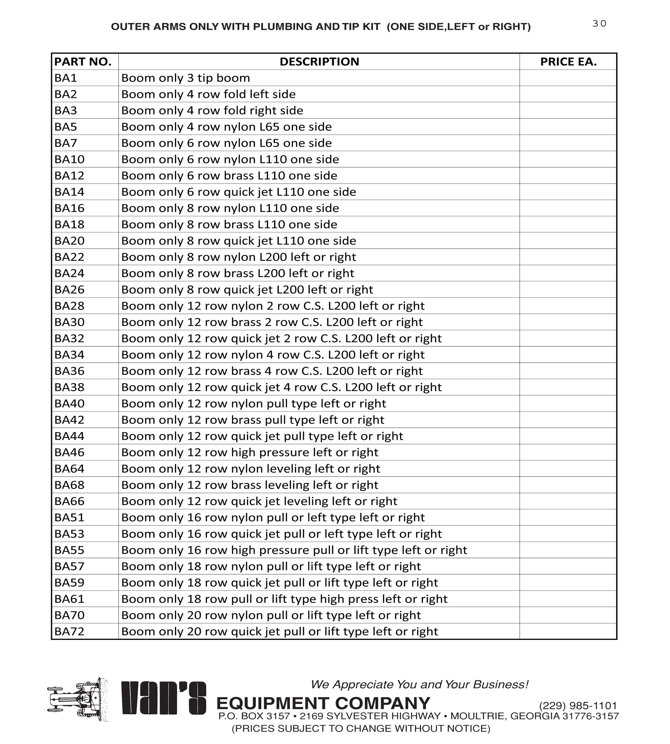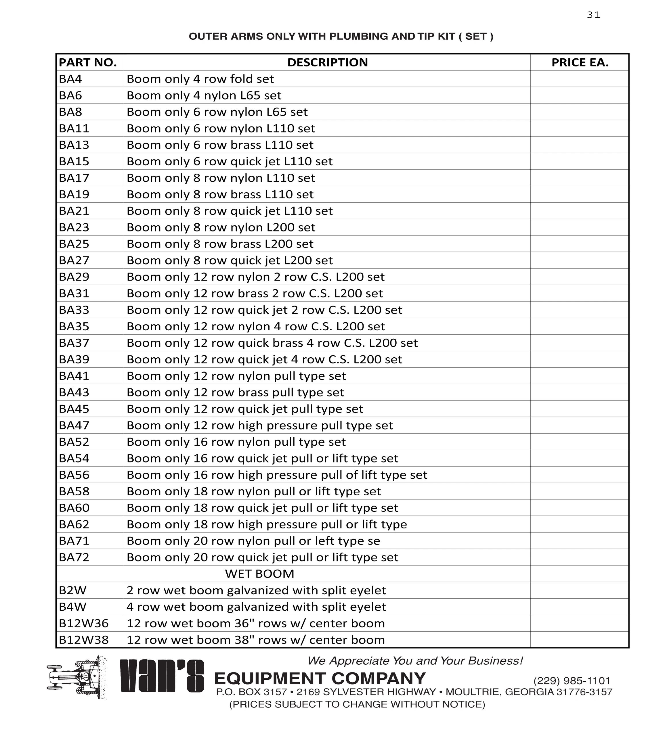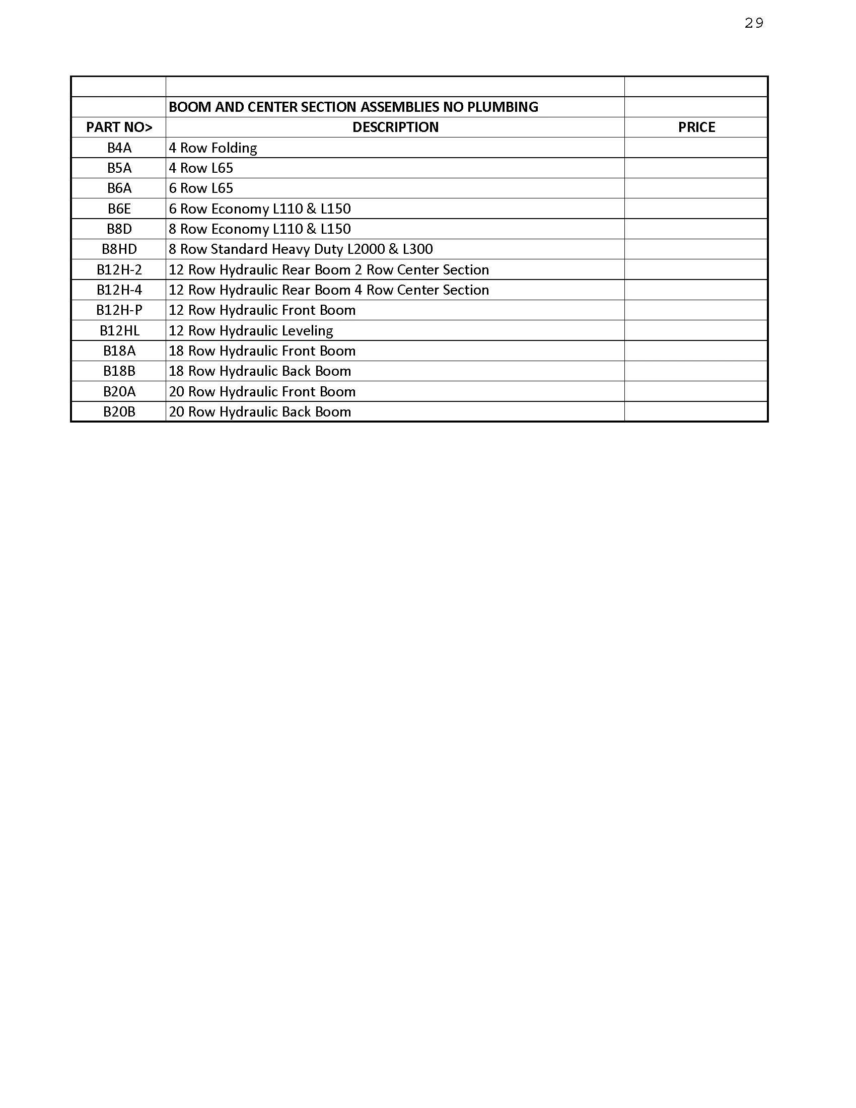 Boom and Center Section Assemblies With Plumbing and Tip Kit